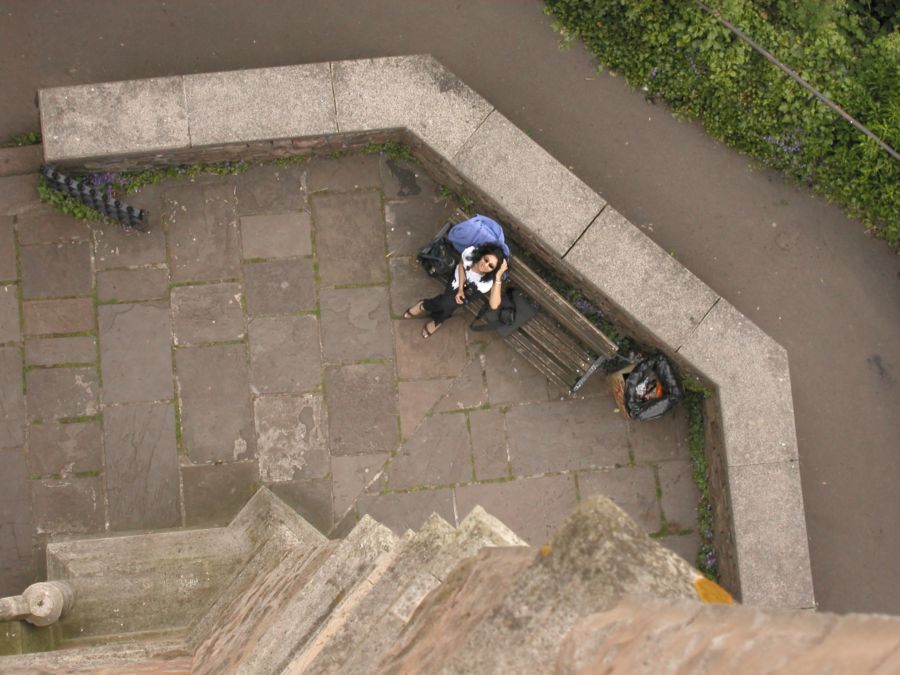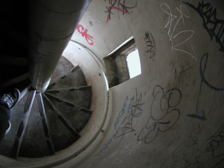 Climbing the tower stairs.