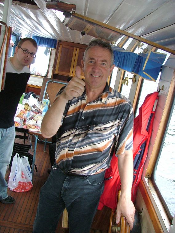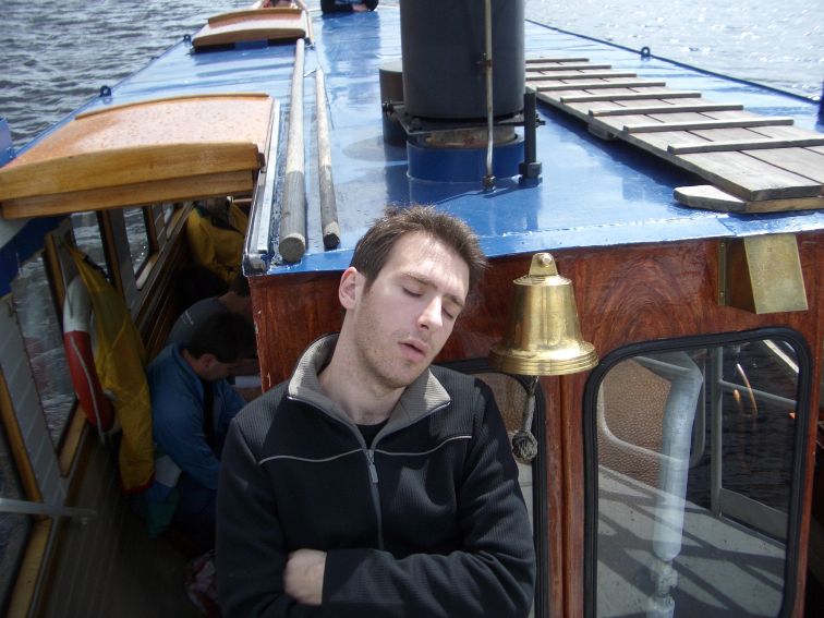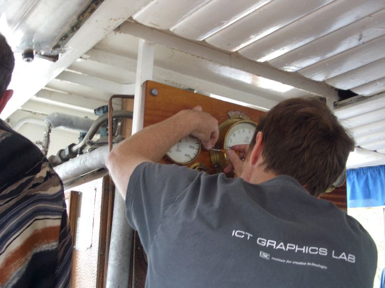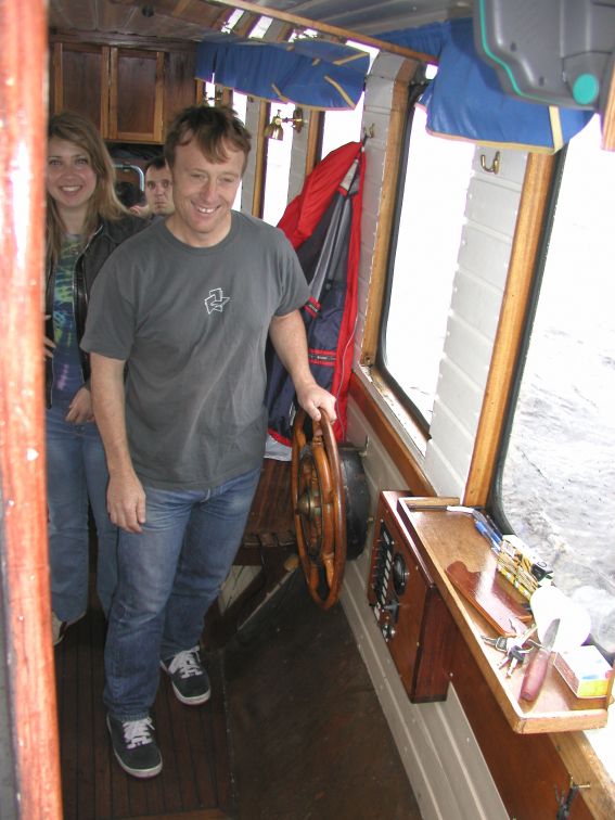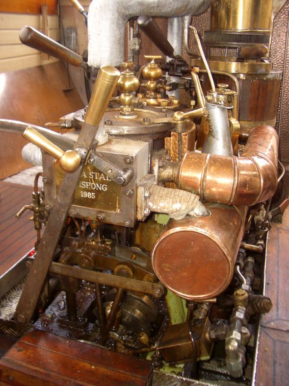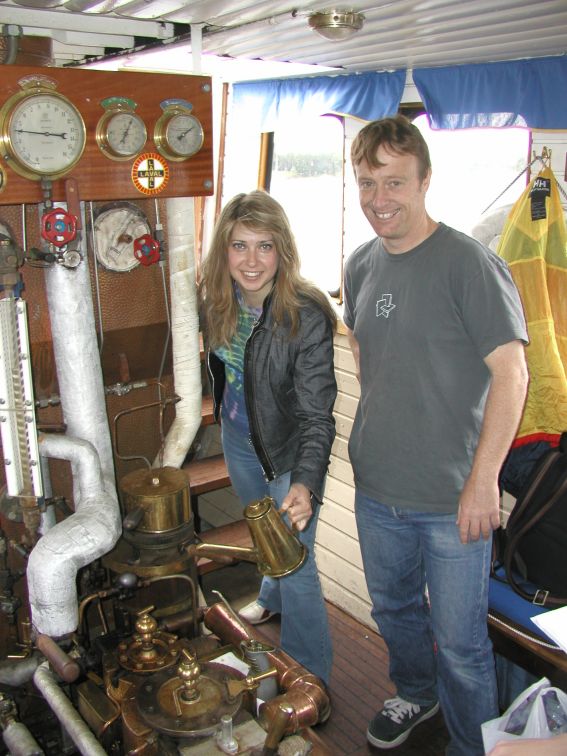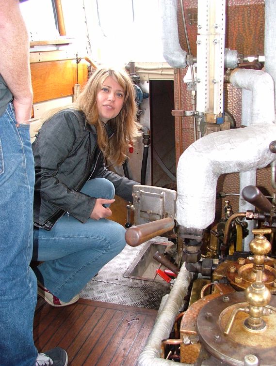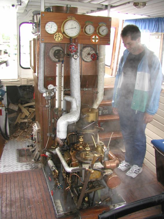 Tomas checking out the boat's steam engine.