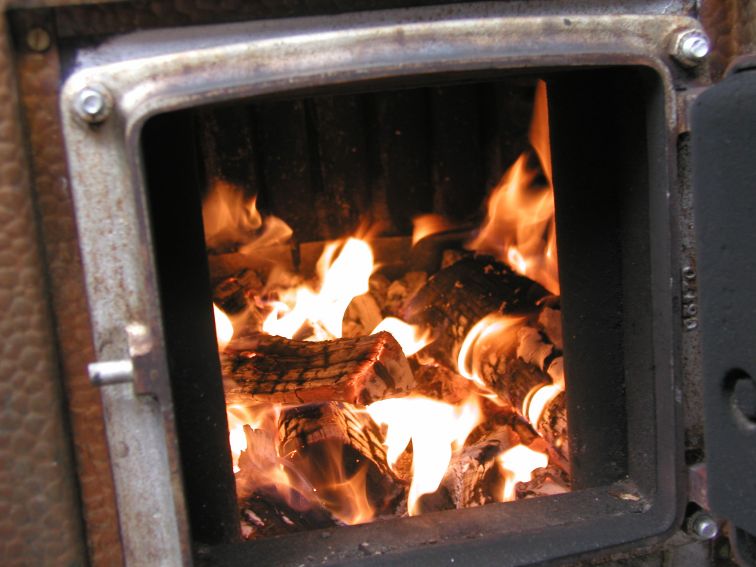 The furnace below the boiler. I'd never seen a wood-fired