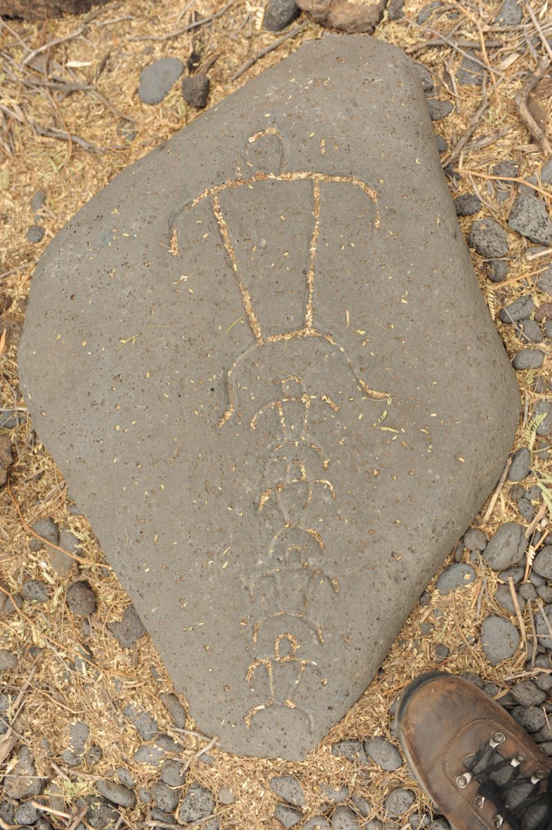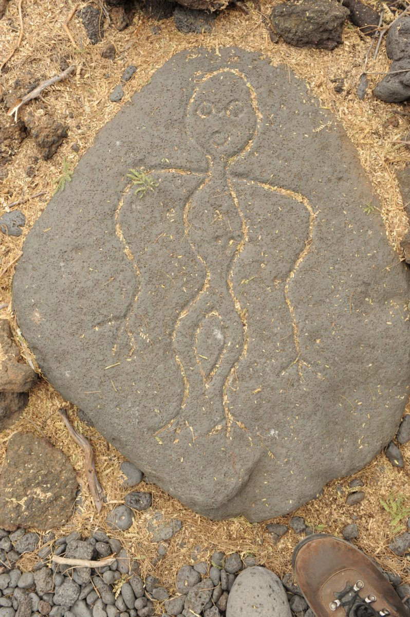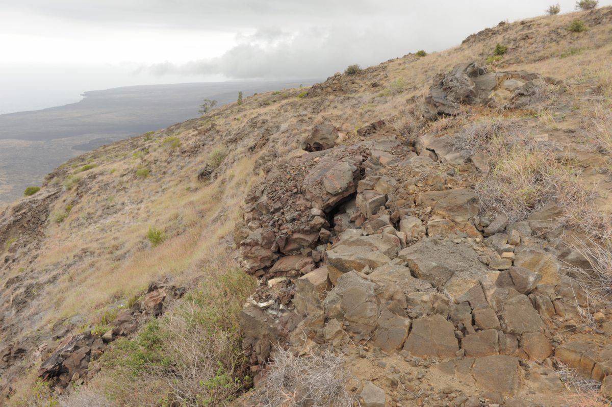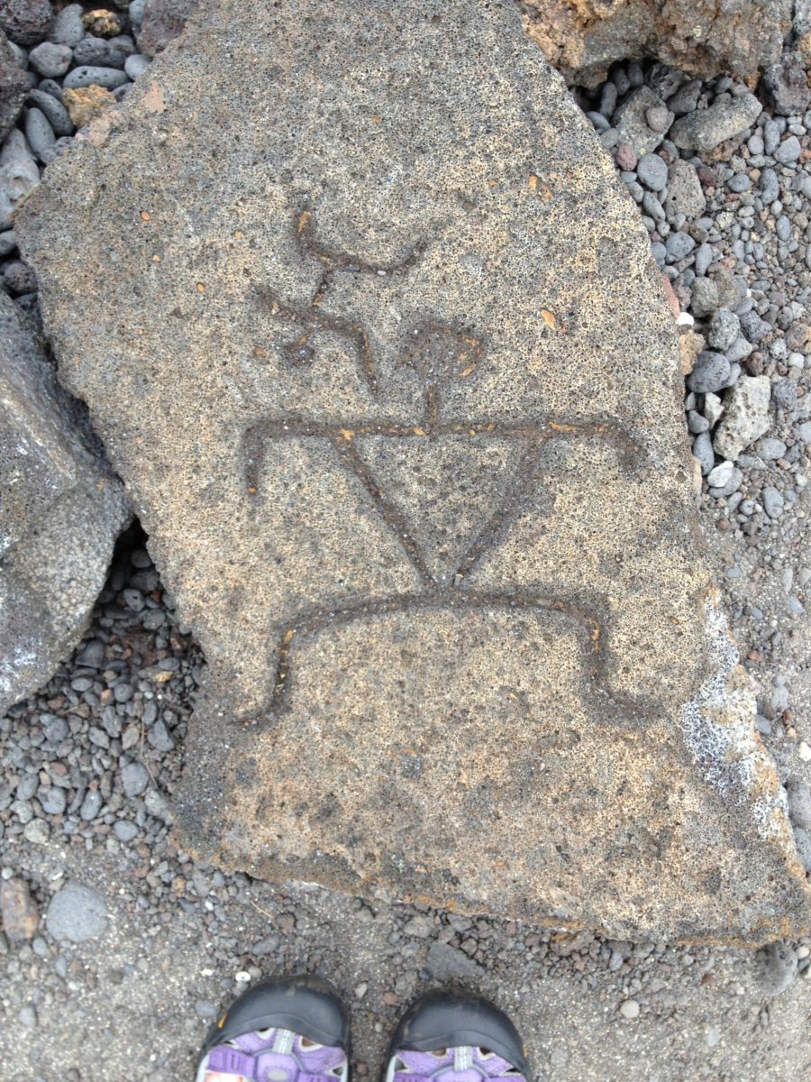 This was actually a lava tube on whose walls a few petroglyphs