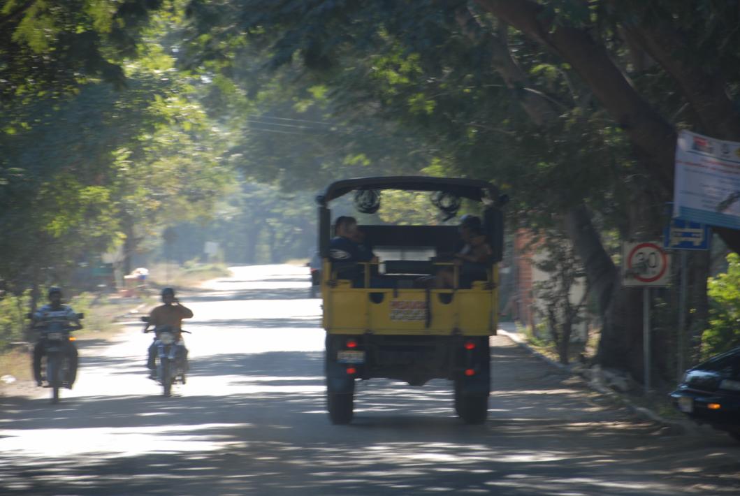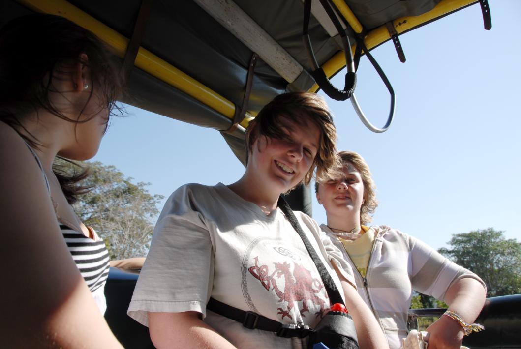 back of the open-air van we rode up to the rainforest.