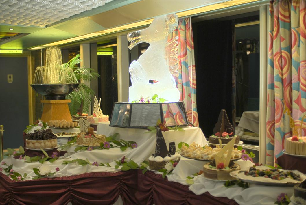 the mid-deck pool, with cool ice sculptures and gorgeous