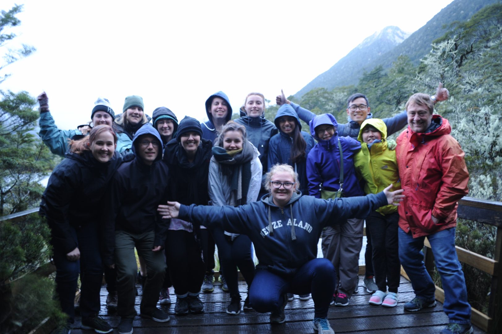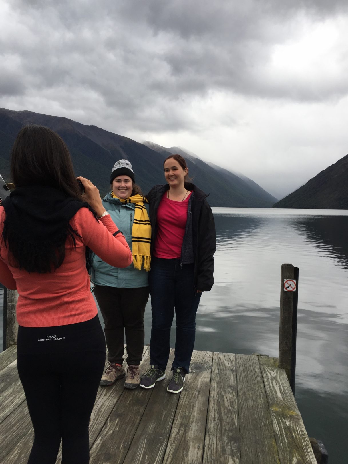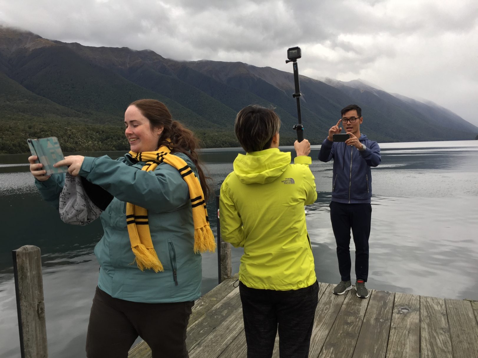 Page 21, wherein about half of us go on a final group kayaking adventure on Lake Mapourika.