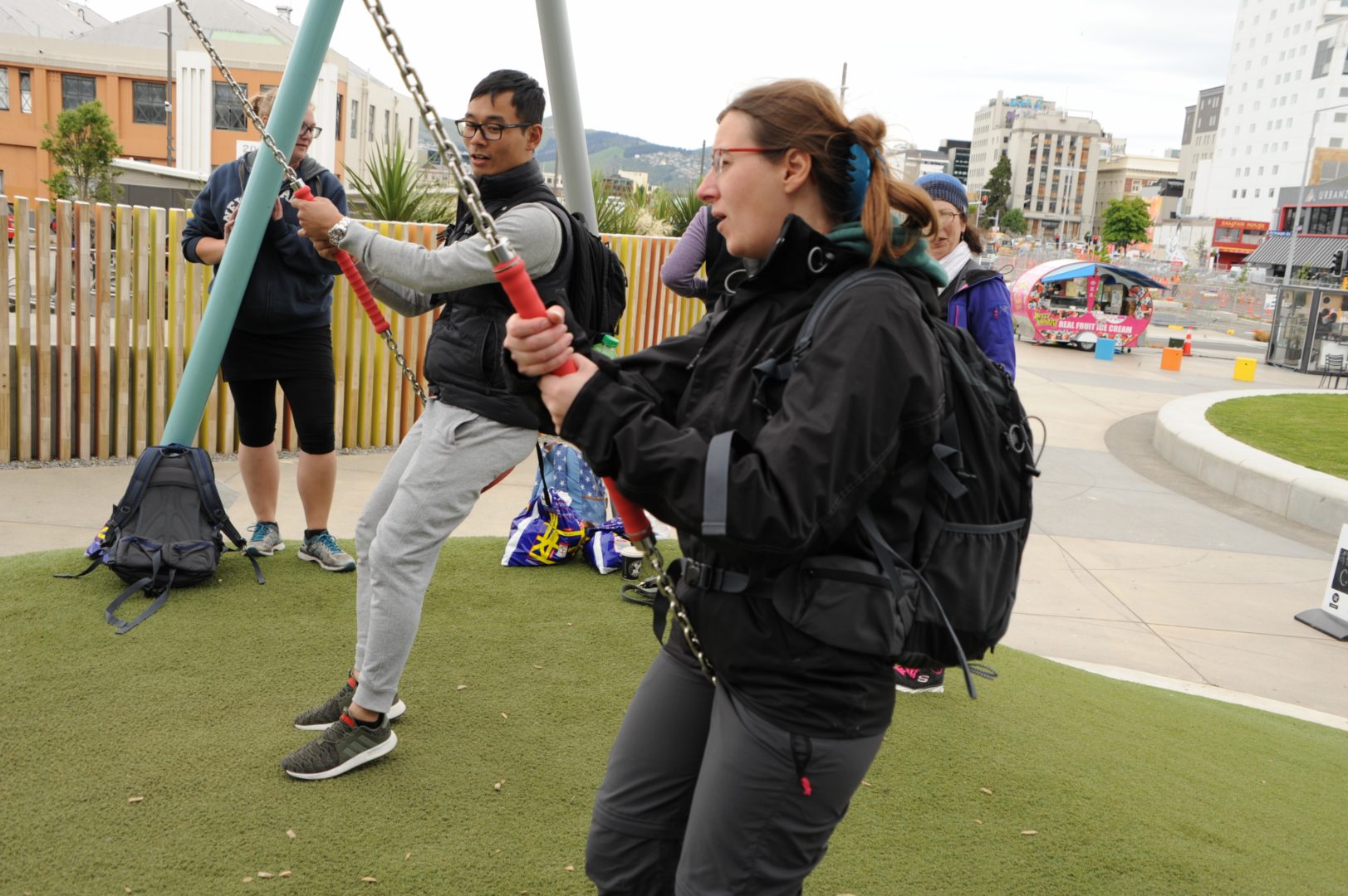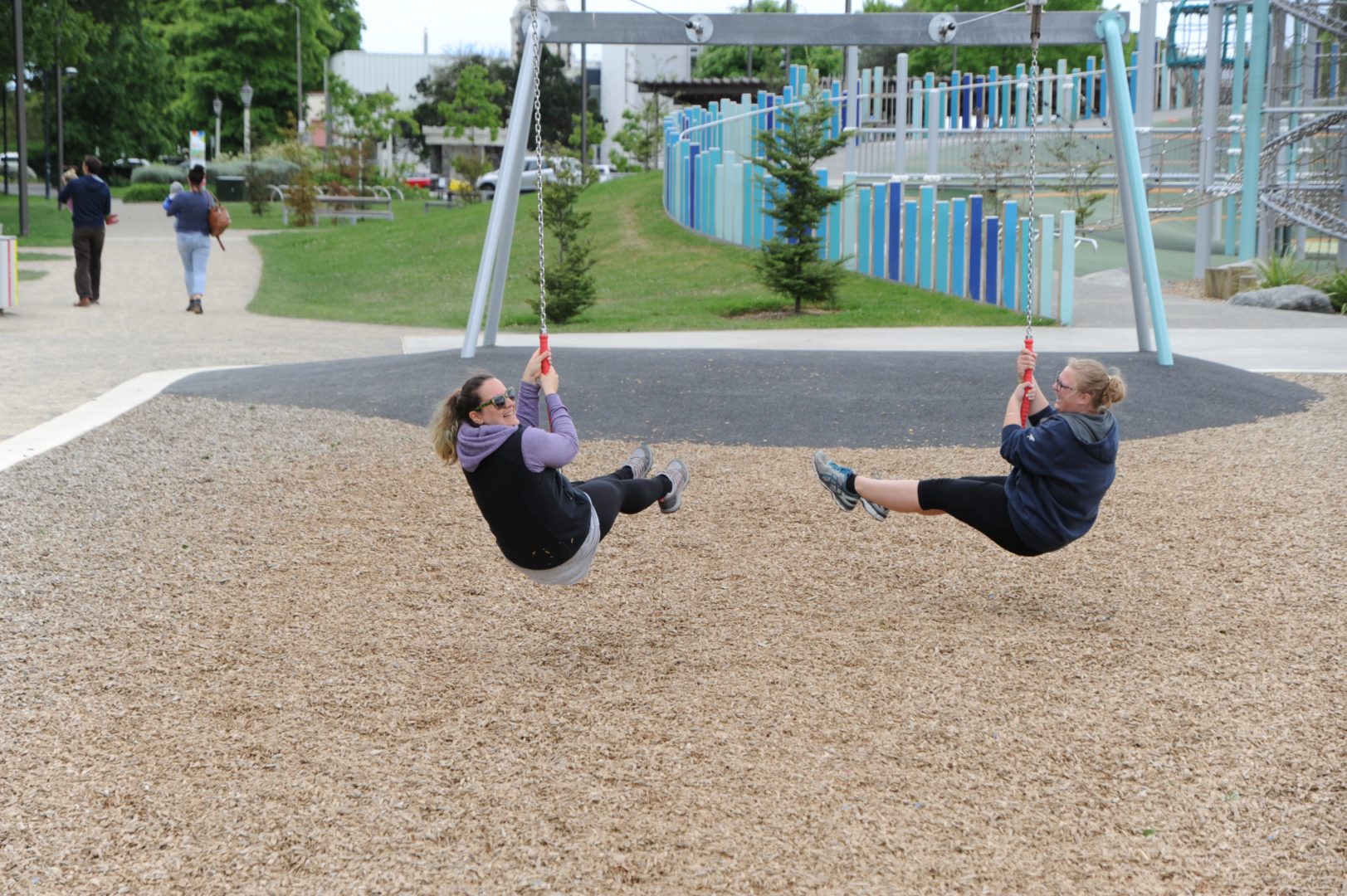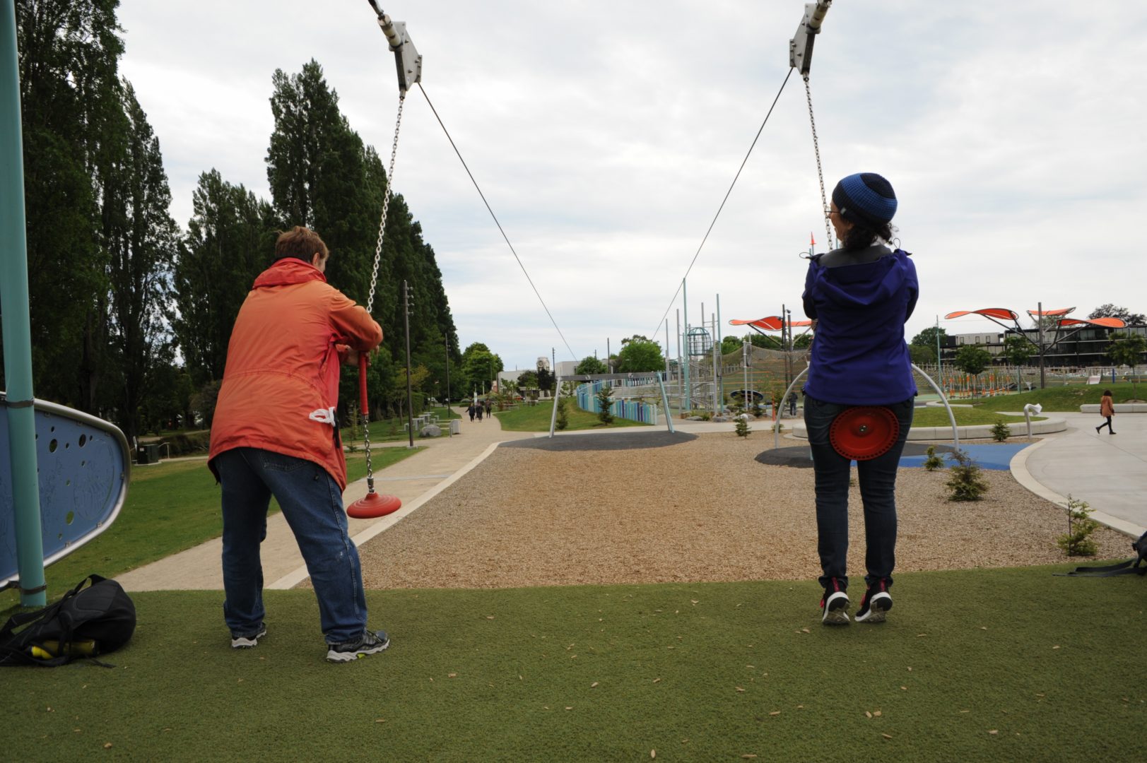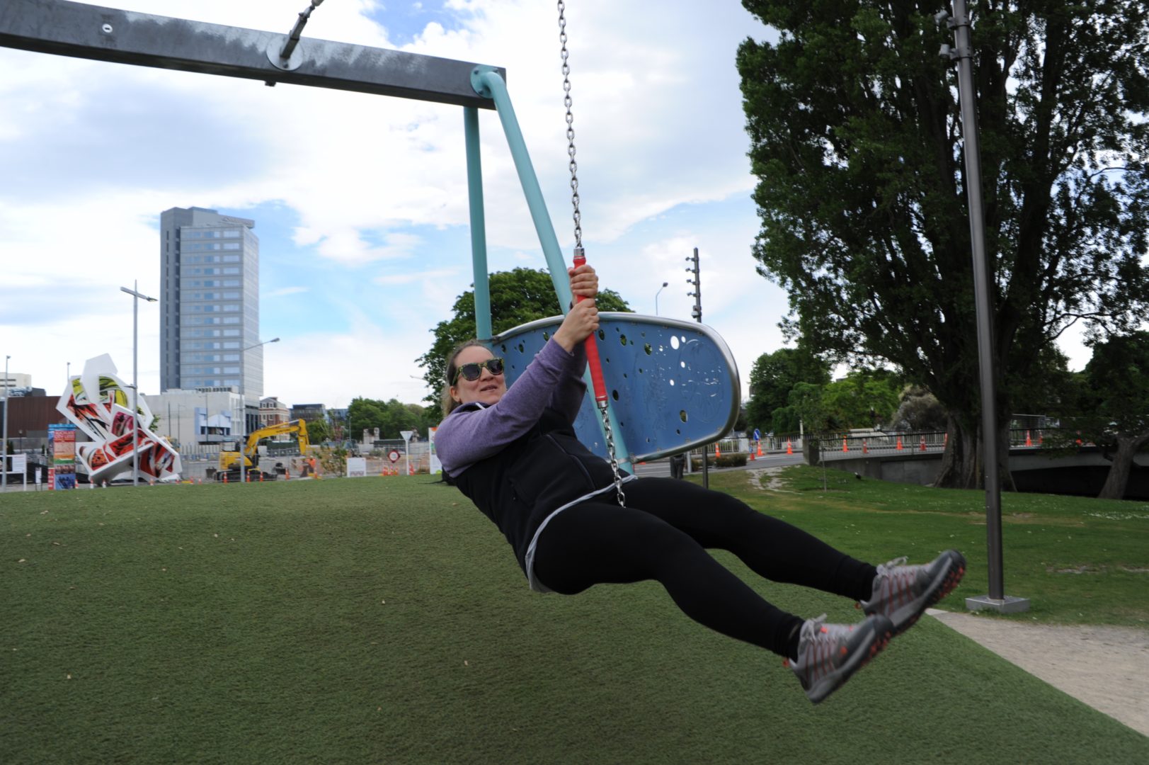 at a massive playground in the midst of even more massive