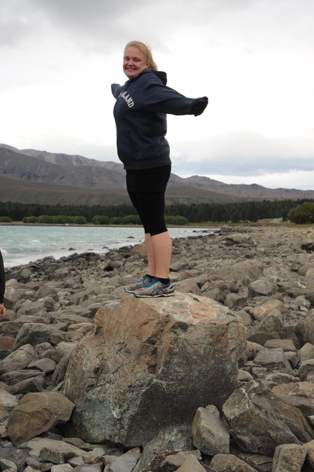 Jess trying not to be blown off Selfie Rock