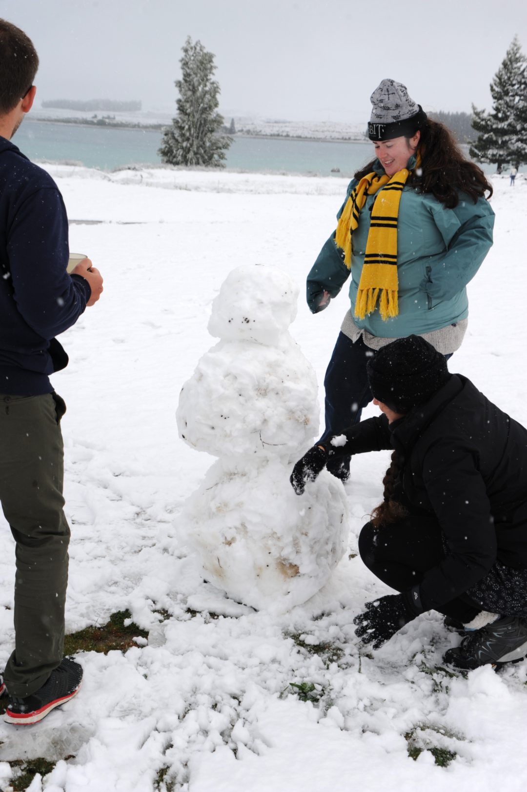 Snowman in progress with Jon, Patricia and Lynette