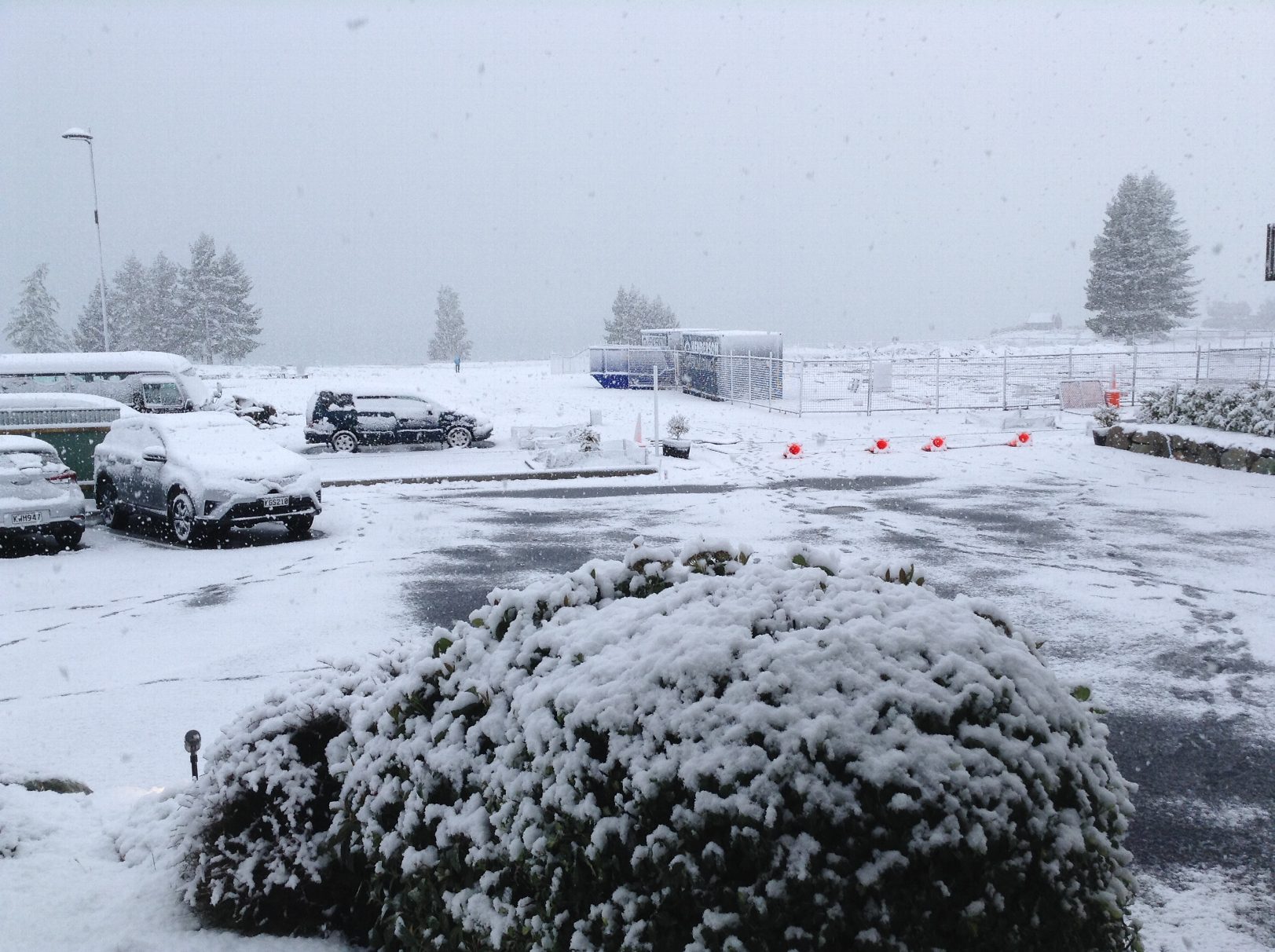 The next morning greeted us with falling snow! While