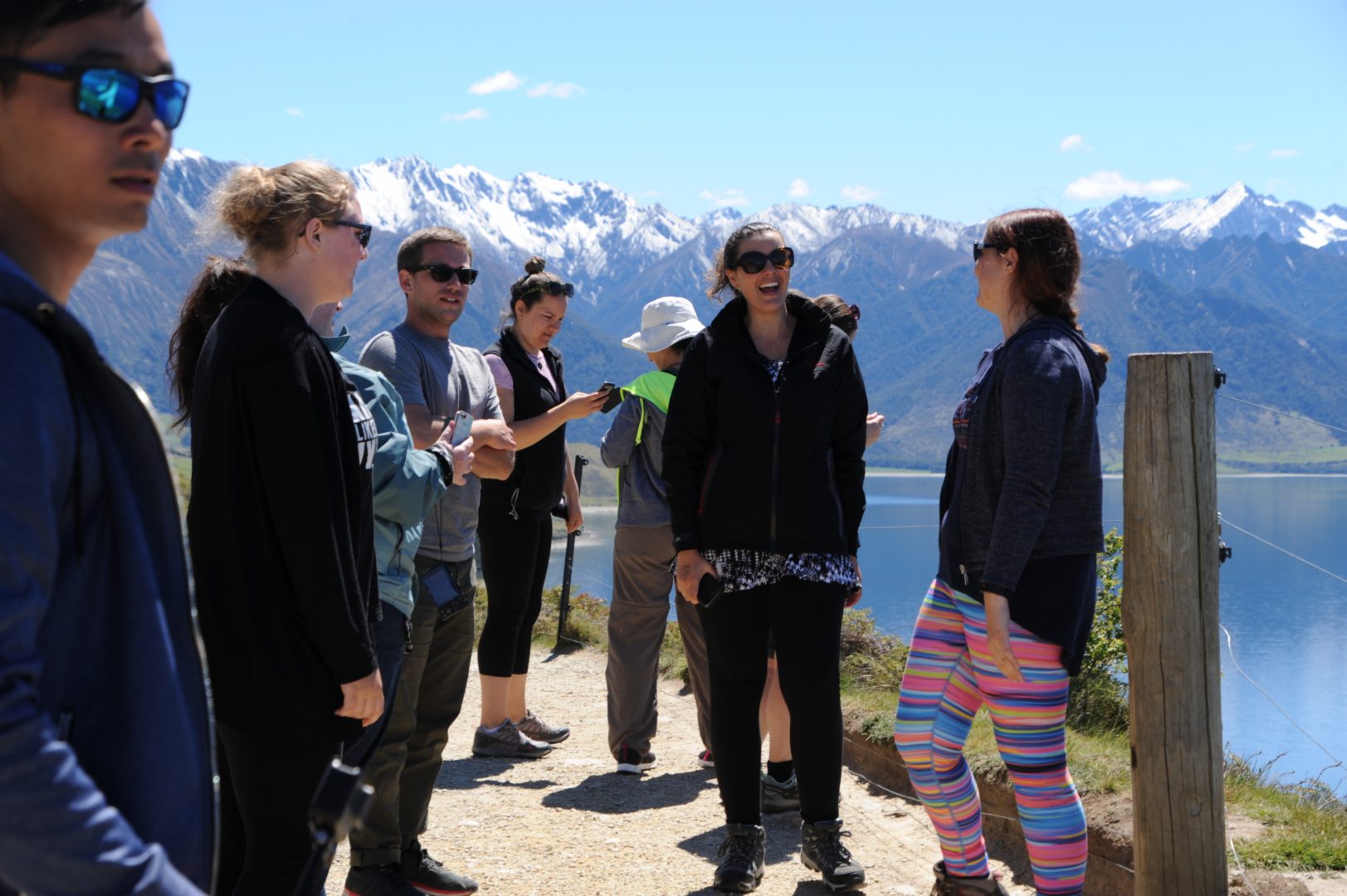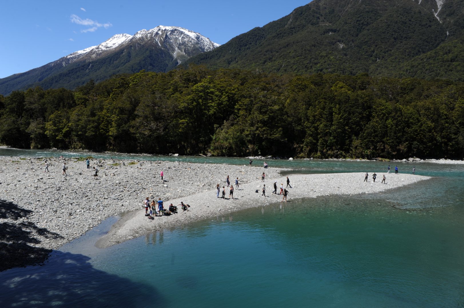 Page 21, wherein about half of us go on a final group kayaking adventure on Lake Mapourika.