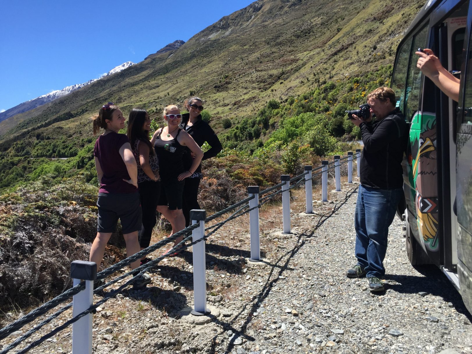 Page 18, wherein we drive over a mountain pass to get to Wanaka. The following day, most of us take a hike up Mount Iron. Some of us also go to see "The Lonely Tree"