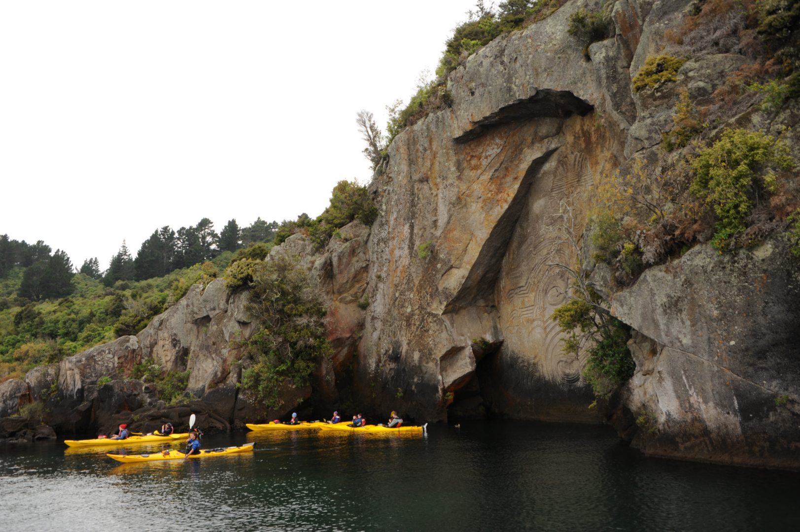 Page 21, wherein about half of us go on a final group kayaking adventure on Lake Mapourika.