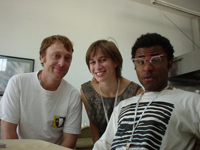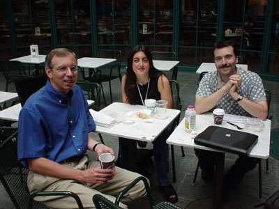 Gary Meyer, Ann McNamara and Harold Westlund at breakfast. Gary and Harold are from the University of Washington, and Ann is from the University of Bristol, and we were talking about work Gary and Harold have done to extend Radiance to handle arbitrary BRDFs.