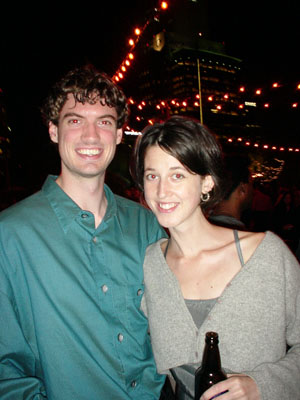 Matt and Ella at the reception, a long-distance couple who met at Ella's technical sketch a year ago in Orlando, and they kept in touch through phone calls and e-mail until their reunion this Siggraph. Ella is Katerina's close friend from Bristol (see next picture).