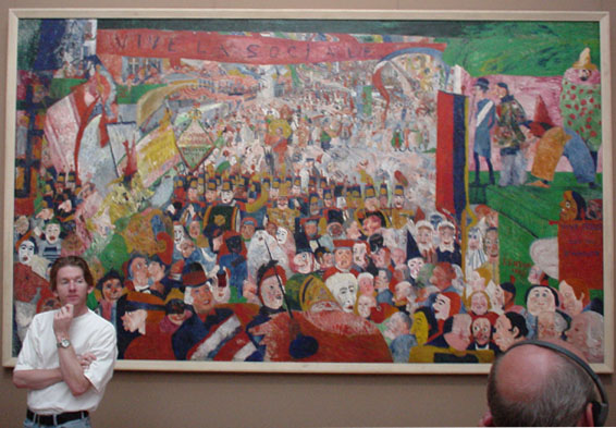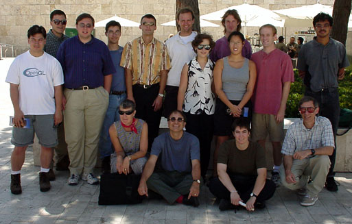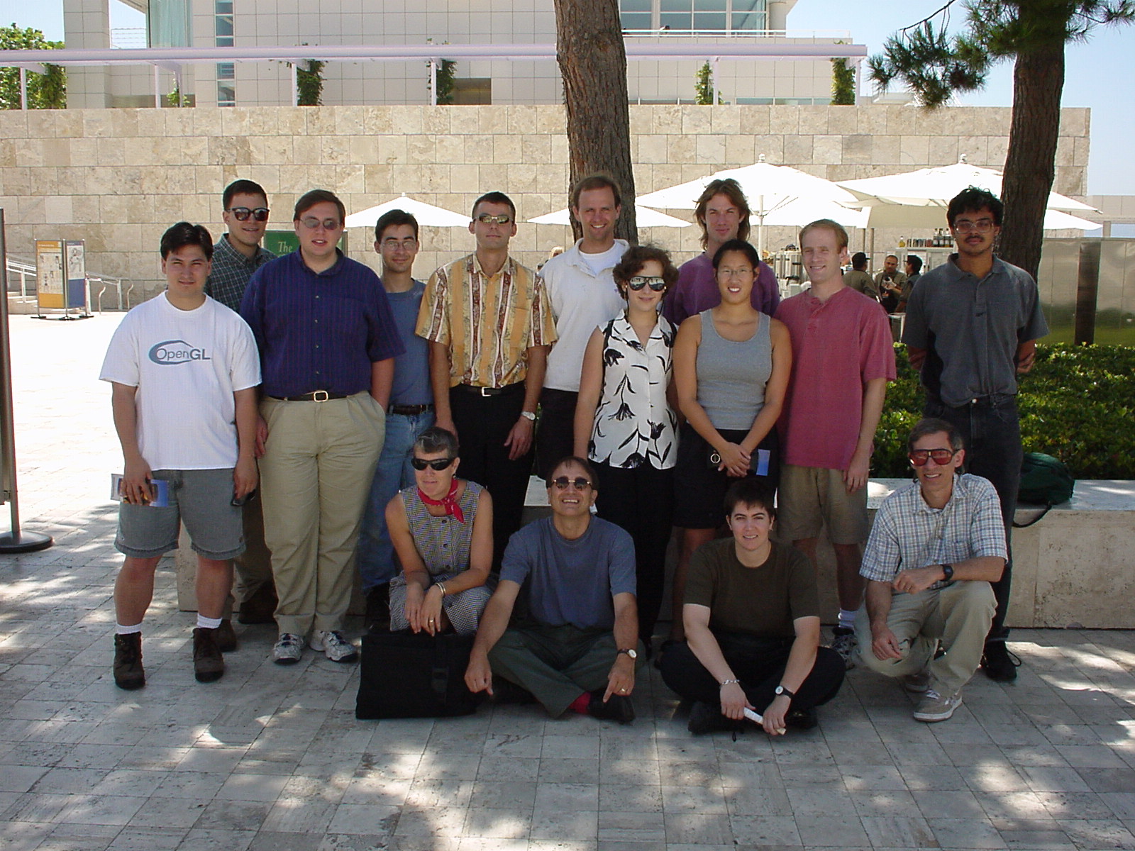 The Stanford Univ. group I accompanied to the museum. Starting from the left, there is Kekoa Proudfoot, Brad Johanson, Szymon Rusinkiewicz, Lucas Pereira, Francois Guimbretiere, John Owens, Elena Vileshina, James Davis, Diane Tang, Mystery Guest, and Ravi Ramamoorthi. Bottom row from left is Delle (Pat's wife), Pat Hanrahan, Tamara Munzner, and Marc Levoy. (Thanks to Elena for helping me out with the names. Option-click image for a hi-res version.)