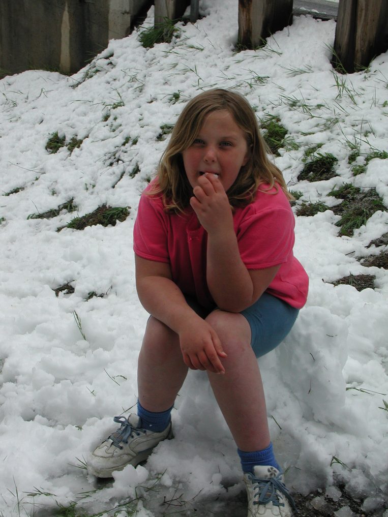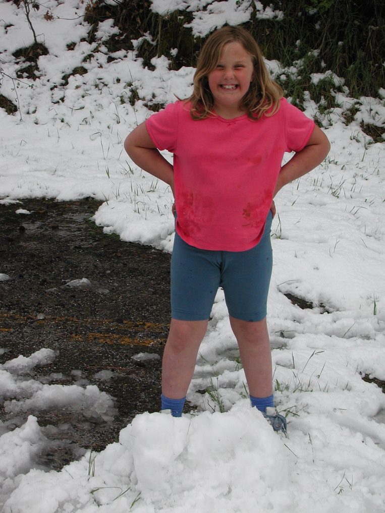 Tessala tasting the snow.
