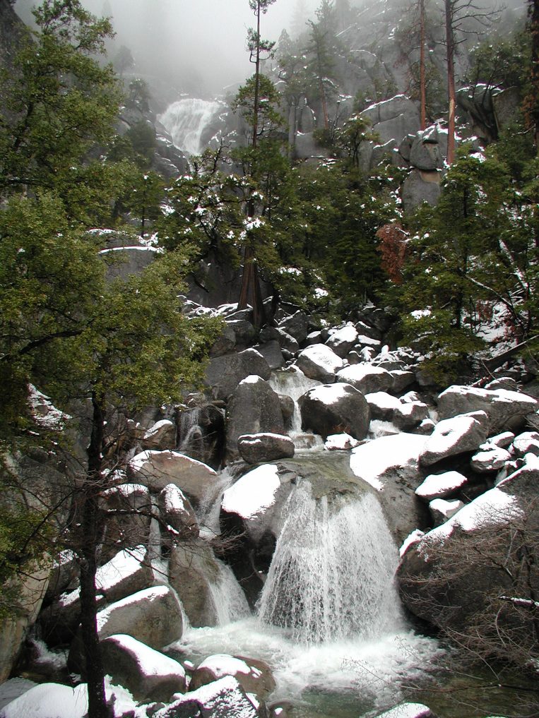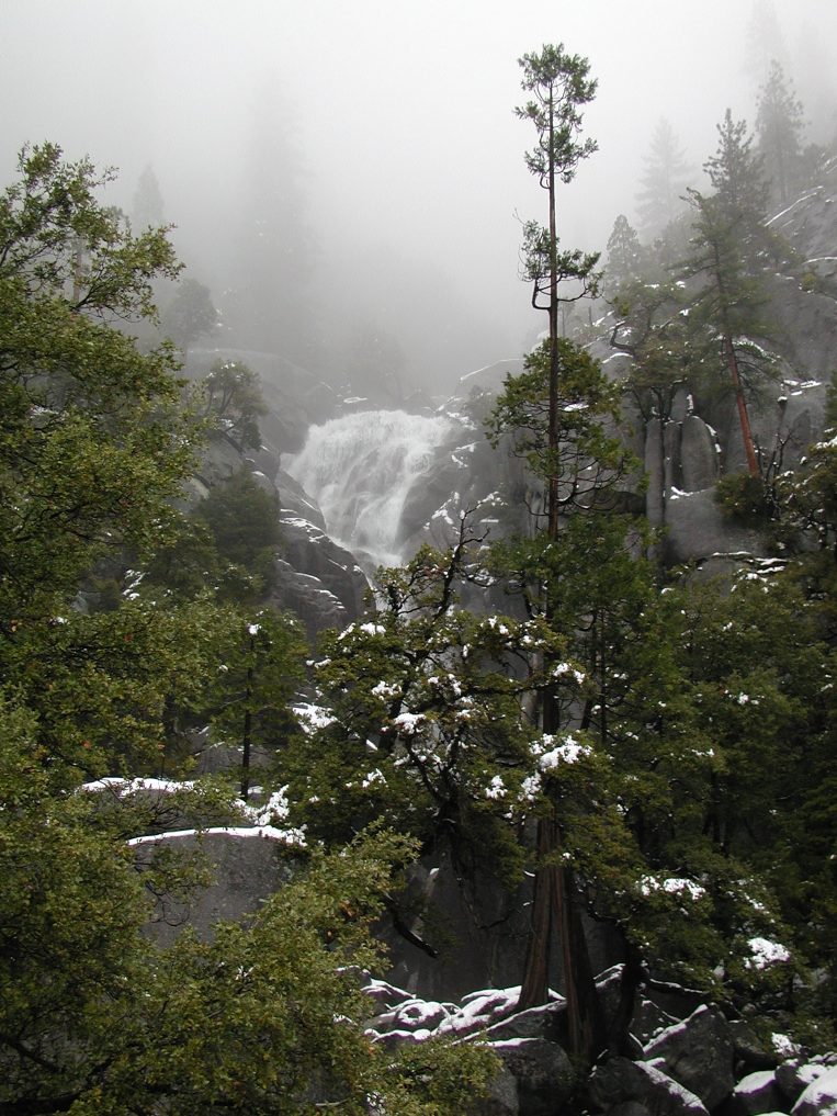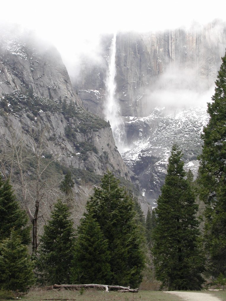 Yosemite falls was just visible through the mist.