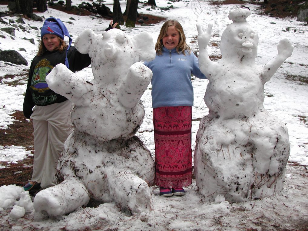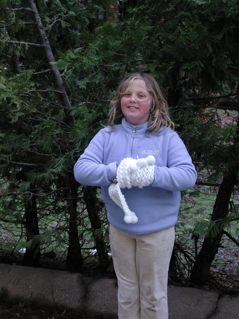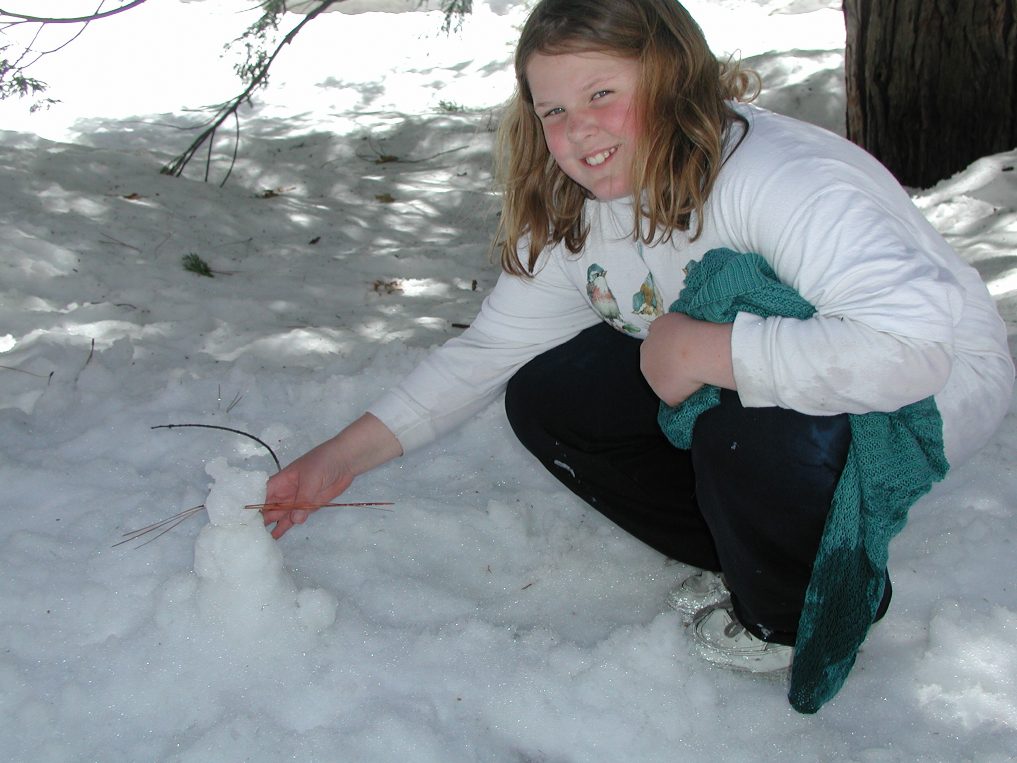 Alina makes a snow mouse.
