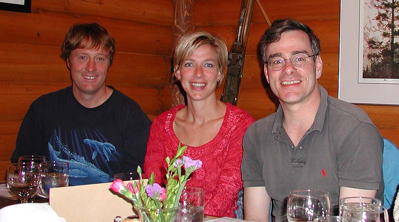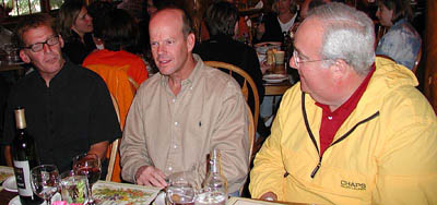 The first night's dinner was also our first opportunity to get to know our fellow cyclists. Left to right, here are David (our guide), Andrew, and Bob.