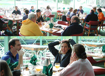 Monday morning, we met and had breakfast at the club house of the Banff Springs Hotel golf course. Kara, one of our group leaders, gives me the "What is he doing with that camera?" look I get so often.