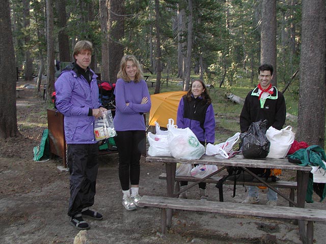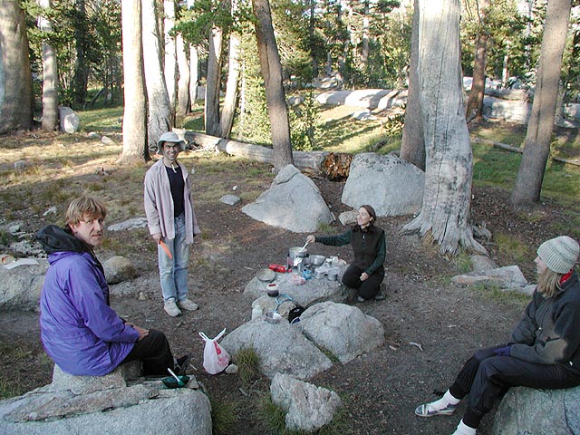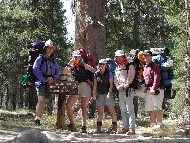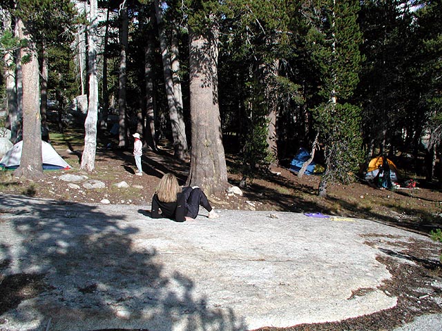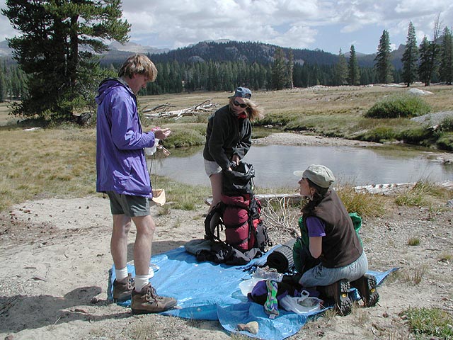The first night was spent in the backpackers camp near Tuolumne River. The plan was to pack up the 3.5 miles to Lower Cathedral Lake and set up our remote camp there for two nights. It didn't sound too ambitious to us at the time....