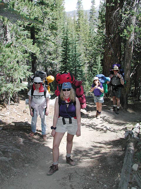 Once we got to the trailhead, we had to reload our packs using the bear canisters we rented at the ranger's station. Bears are a big problem throughout Yosemite, and hanging packs from the trees doesn't seem to work anymore.