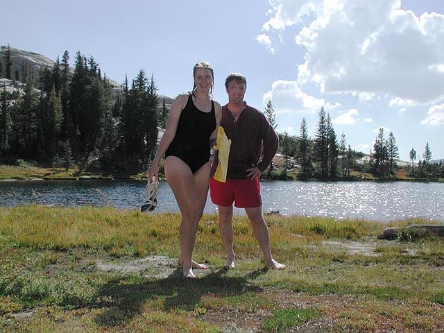 After setting up camp, Laura and I went for a swim by the west shore. The water was cold and refreshing, and Dave followed our lead a bit later.
