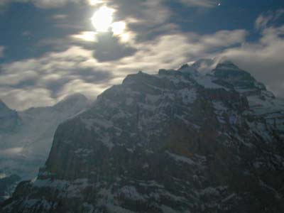 I was so excited to be in the Alps on my first night in Muerren, that I couldn't wait for daybreak to take a picture. This was the moonlit view out my hotel room window.