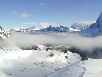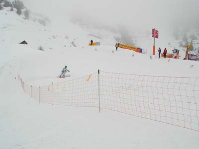 After renting my equipment and getting my ski pass, I took the cable car up to the first run, which had a good view of the downhill race already underway.