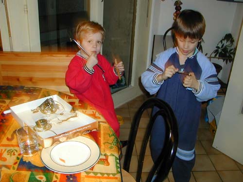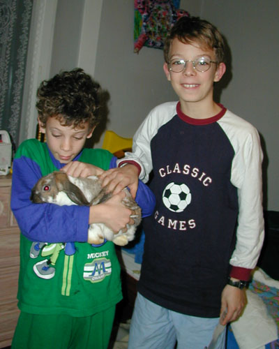 Here are Jean-Louis and Armelle's two boys, Mael (left) and Killian (right), with bunny. These two also got along famously, which is making me wonder if it's there is something about the Swiss upbringing. Maybe it's the weather....
