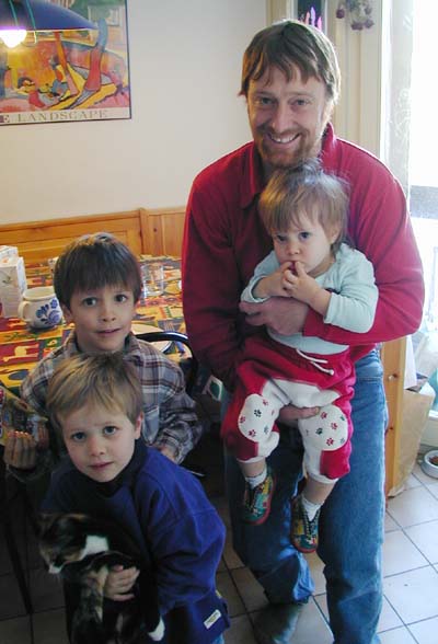 Here I am with the kids (and cat) -- this was the only picture I got of myself on this trip, so I had to keep it.