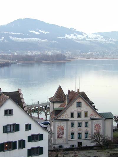 This was a combined business and pleasure trip. The first two days were spent near Zurich, where we visited a couple of companies and did a little sightseeing in the mornings and evenings. Here is a vew of Lake Zurich in the quaint little town of Rapperswil, where we had our hotel.
