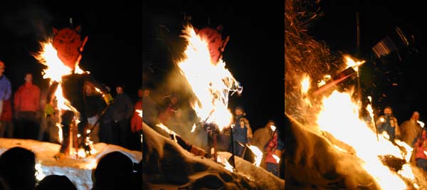 The parade led to a little celebration at the ice rink, which concluded with the solemn burning of the devil in effigy.