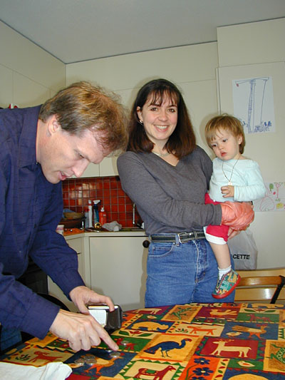 Here is Raphael with his wife Chantal, holding Emilia. Raphael was counting out money for Emilia to hand to her baby-sitter.