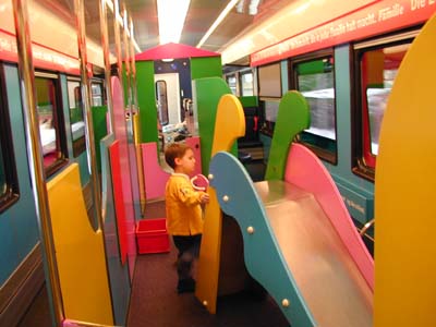 Another example of Switzerland's marvellous train system -- a "family car" where kids can play while parents watch or catch a few much-needed Z's.