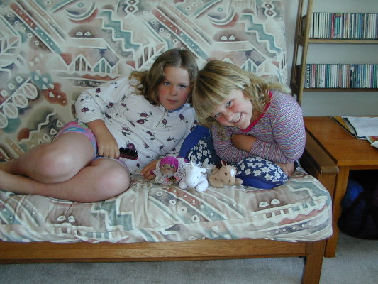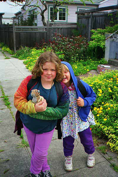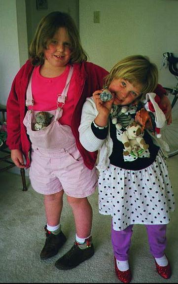 Alina and Tessala on their walk to school from my apartment; April '99.