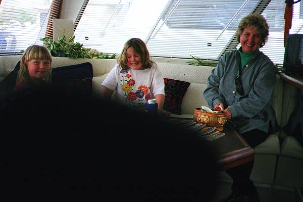This is the girls with my mom on my parents' boat. I'm standing very close to the galley, where I'm guessing dinner must have been cooking on the stove....