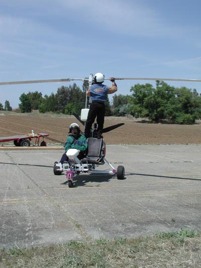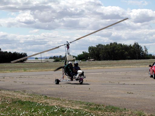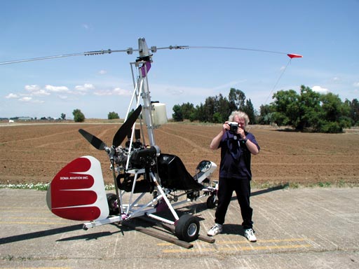 The trainer gyroplane on the ground -- click on the picture to load the MPEG of its landing.