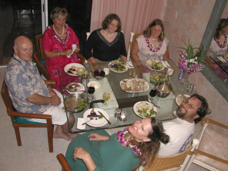 Here we are, all seated for a proper Hawaiian Thanksgiving,