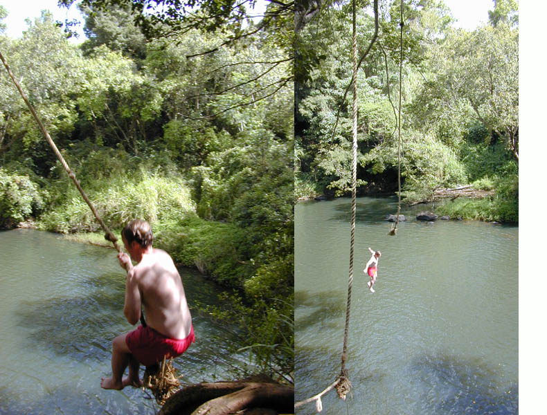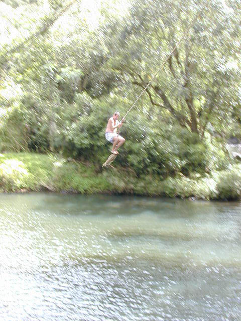 Some nice folks I met took my picture on my third swing. This time I hit the water (I think -- my memory is fuzzy).