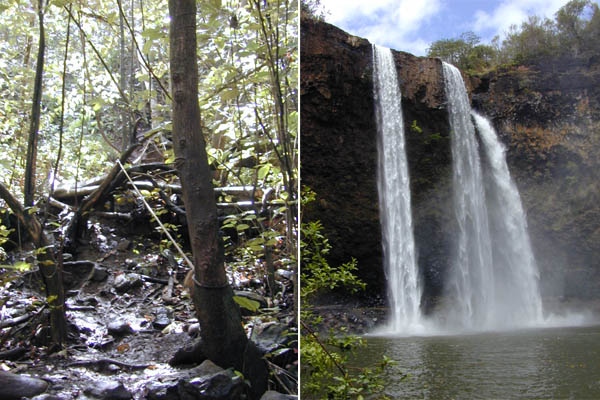 To get down to the pool, I took a muddy trail with ropes to hang onto along the way. Swimming under these falls is not advised, but I did go behind them and dive into the pool near the spray, which was exciting enough for me.