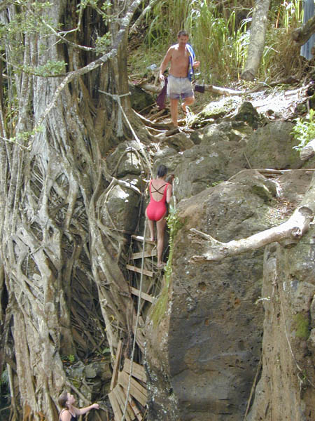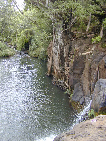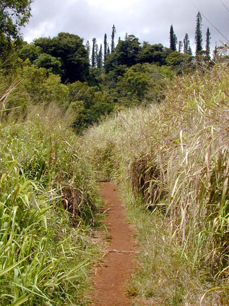Laura's guidebook recommended this little swimming hole under a waterfall on cane grower's land near Lihue. This is the trail leading there.