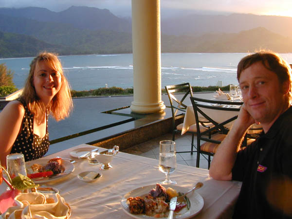 For dinner, Laura and I went to the Princeville Hotel on the northern shore, where we had a wonderful meal and watched the sunset. This is the lobby.