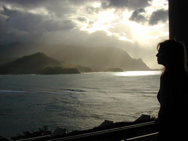 Tuesday, we rested from the strenuous day before. Laura went for a walk along a nearby beach while I went in search of the perfect swimming hole. (I found two.) In the evening, we dined and watched the sunset from the Princeville Hotel.