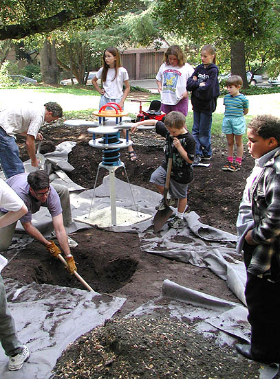 That Sunday, a community group was putting in some new play equipment. Fortunately, they were OK with the kids pitching in a bit -- something that would have been difficult to keep them from doing.