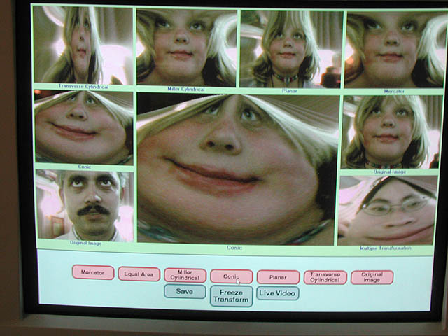 Tessala and Paul demonstrate the real reason computer graphics was invented -- to see what your face looks like under various spherical projections.