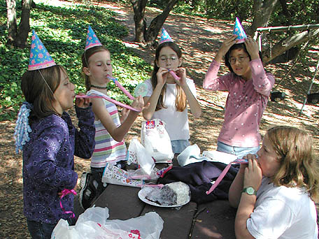 At last, Dad remembers to get out the party favors he'd gone to some trouble and expense to purchase.