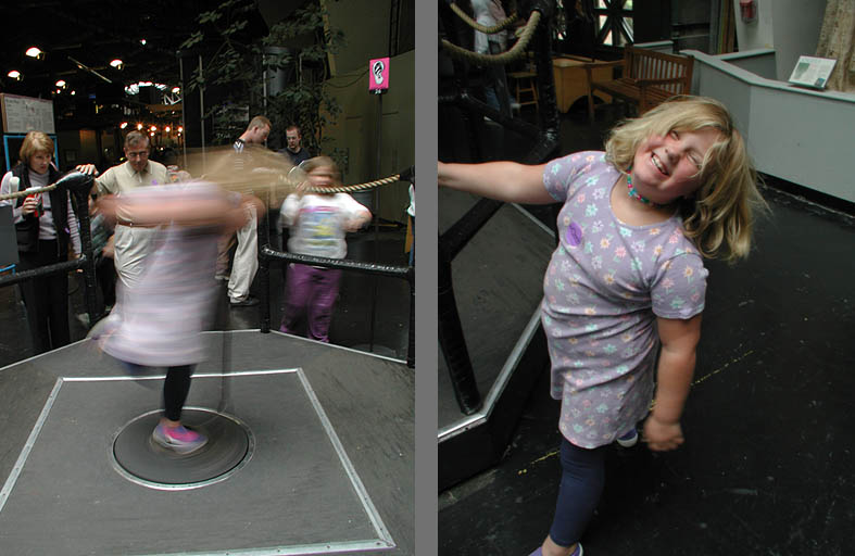 Everyone seemed to really enjoy this one -- just a rotating table, but it was fun to make the various wheels and rings stay on. Sort of like a perpetual game of "Battling Tops."
