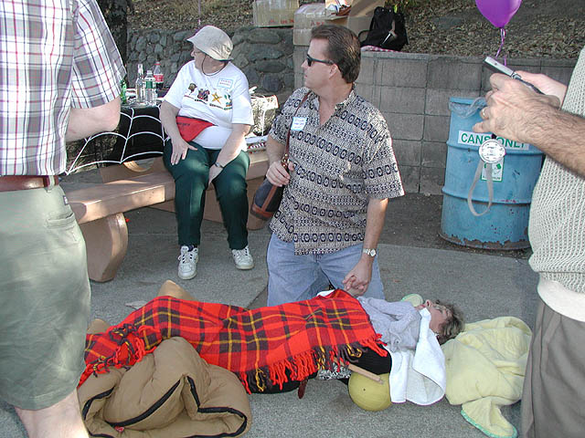 The event was marred by an accident. Phyllis, our hostess, tripped on some uneven pavement on her way to throw something away, and fell badly on her left arm, breaking it in several places. The pain was so great that she went into shock shortly after.