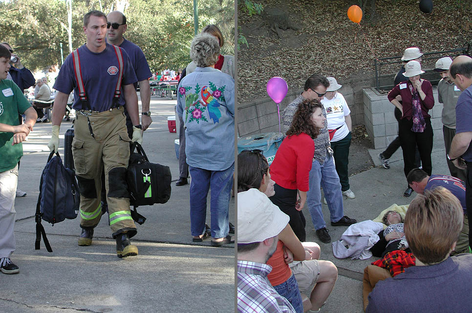 The paramedics were called and arrived in a short time with much-needed assistance.