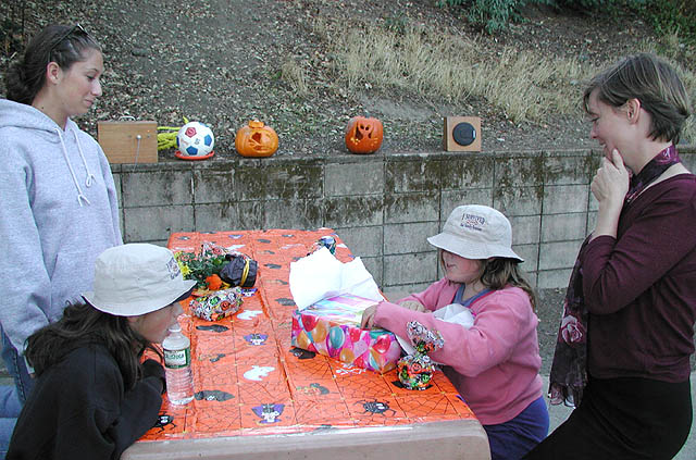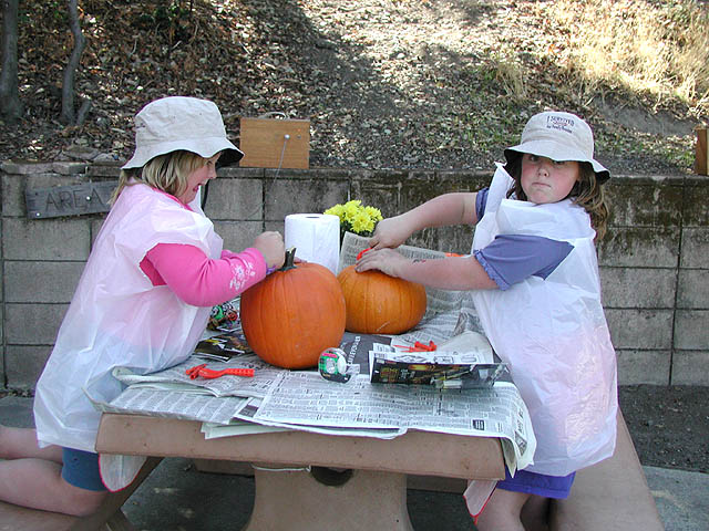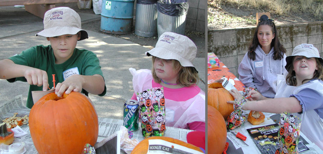 One of the activities provided was pumpkin-carving, and the girls went straight to work. We also got these fishing hats that say, "I Survived 2000 Our Family Reunion" and "In Memory of Ron." I'm wearing mine as I write this, to keep in the proper spirit.