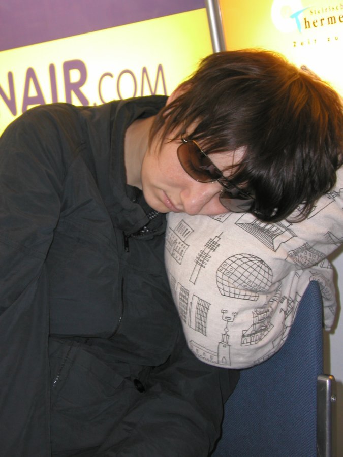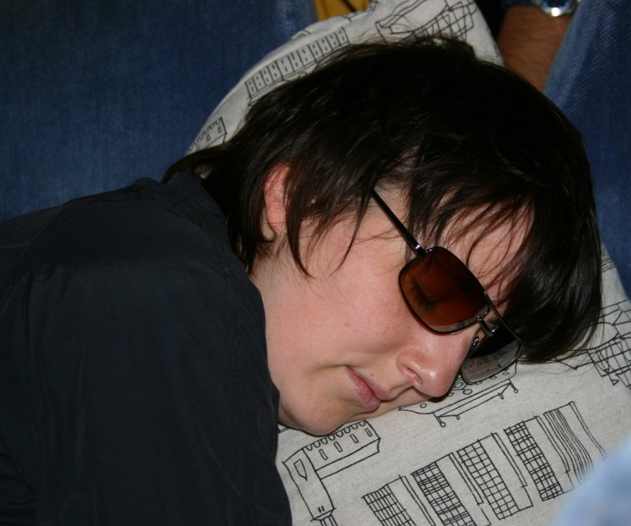 Veronica got a nice nap on the flight back to Stansted,